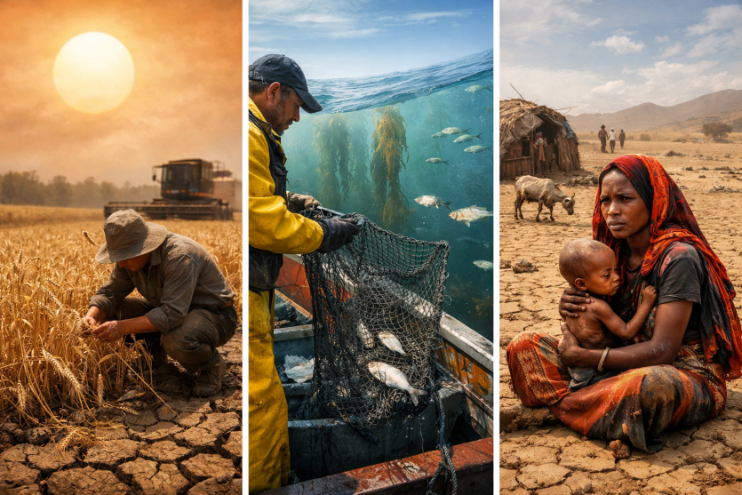 Climate change affects more than weather. It directly threatens global food systems. Heat waves, droughts, heavy rain, and rising sea levels reduce crop and fish production. Many international reports warn that climate change and food insecurity are now closely connected